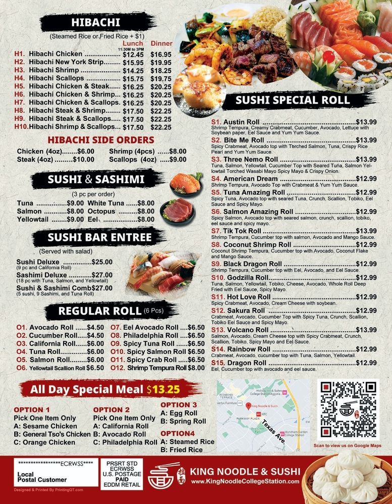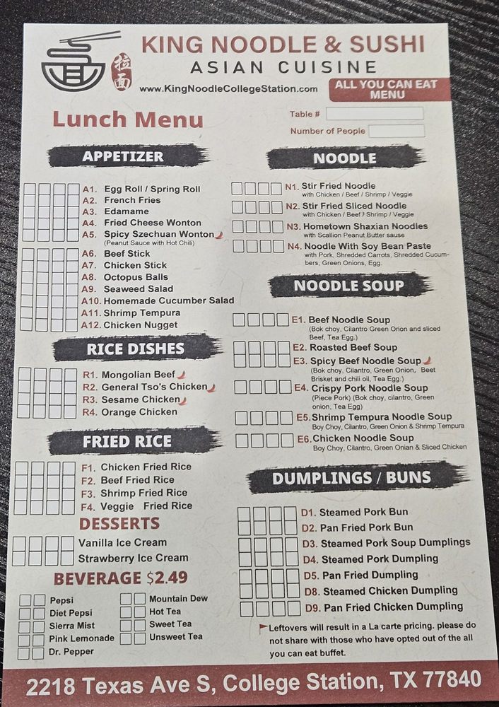 Welcome to King Noodle & Sushi, a delightful haven for noodle lovers and sushi enthusiasts alike, located at 2218 Texas Ave S, College Station, TX. This Asian-owned establishment boasts a vibrant and modern atmosphere, perfect for any dining experience – from a casual lunch to a special buffet dinner.